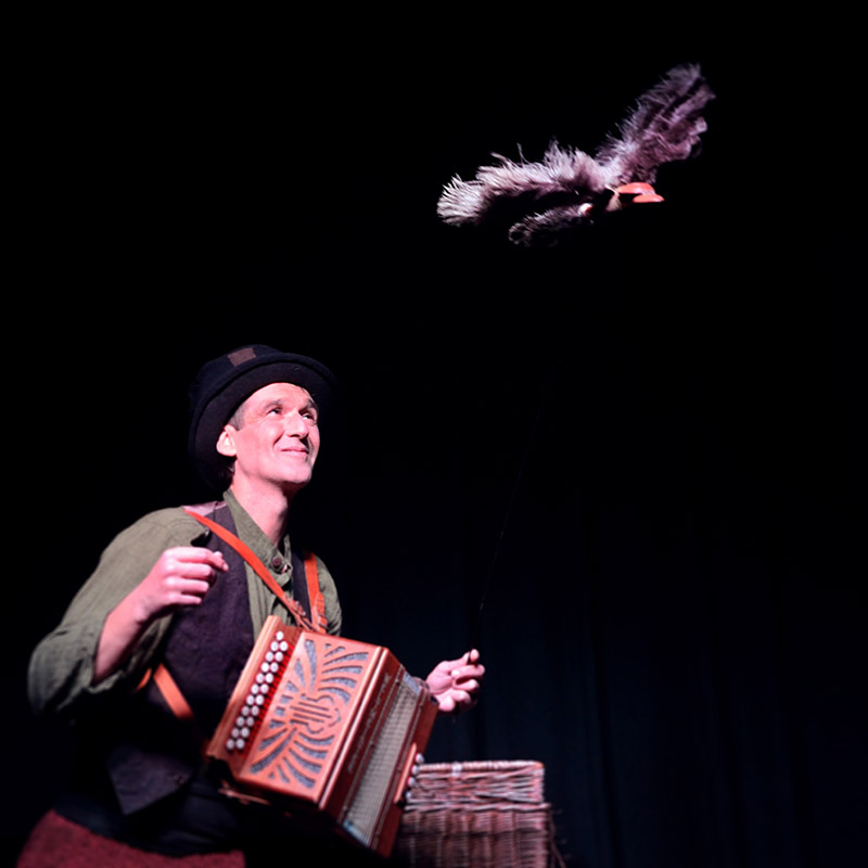 Espectacle còmic basat en tres contes tradicionals. Amb titelles, cançons i música en directe.